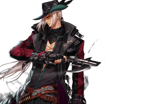 三觉技能【死灭危机】,施放时向前方投掷大量的鹰枪,通过枪舞拉扯鹰枪对敌人造成攻击,最后通关射击将鹰枪引爆而造成终结攻击,虽然技能看起来有点像斯瑞姆的技能,但三觉插画的漫游真的是一枪击中心脏的感觉,非常的喜欢这一个插画。而技能的伤害构造是非常复杂多段攻击,鹰枪、角色移动、分身分离、枪鹰左轮射击和最后一击以及爆炸的多段攻击力。