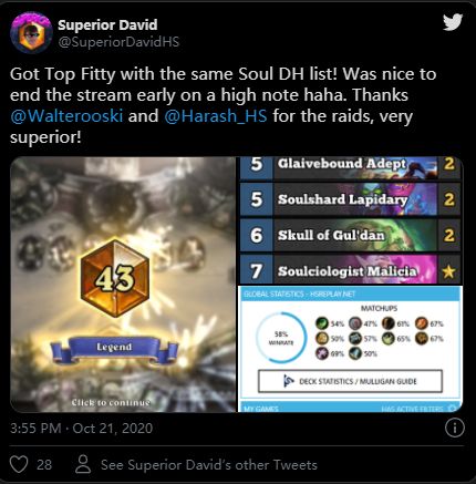 有一说一,瞎子能用的强力套牌就这了。狂野因为职业卡池太浅,胜率还不到40%。标准虽然偶尔会有快攻瞎(低分段还是不错的)或者大哥恶魔体系,但强度比起残片还是差了不少。