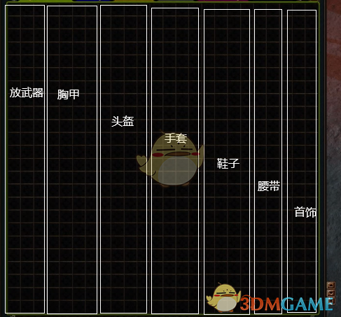 1. 前面三竖排:放单手的武器。法杖啊海贼剑等等占格子1x3的。除了这个搬砖大仓页你还需要备用的武器。除了这三竖排最好再来个十几二十把武器放到别的仓库页备用。