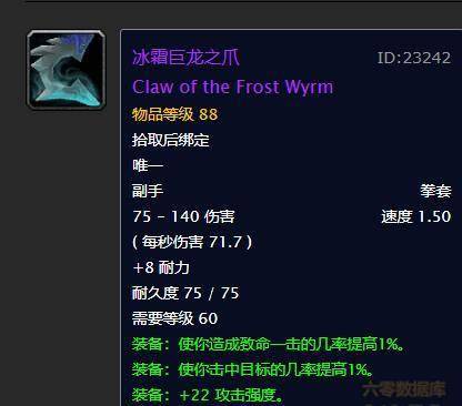 假如真有G团打到这里,就算出了冰霜巨龙之爪,其价格也不会被标的太高,毕竟后边还有饥饿之寒等武器,因此该拳套的存在却是显得比较尴尬,看似强大,却被“副手”二字整的着实令人无语。