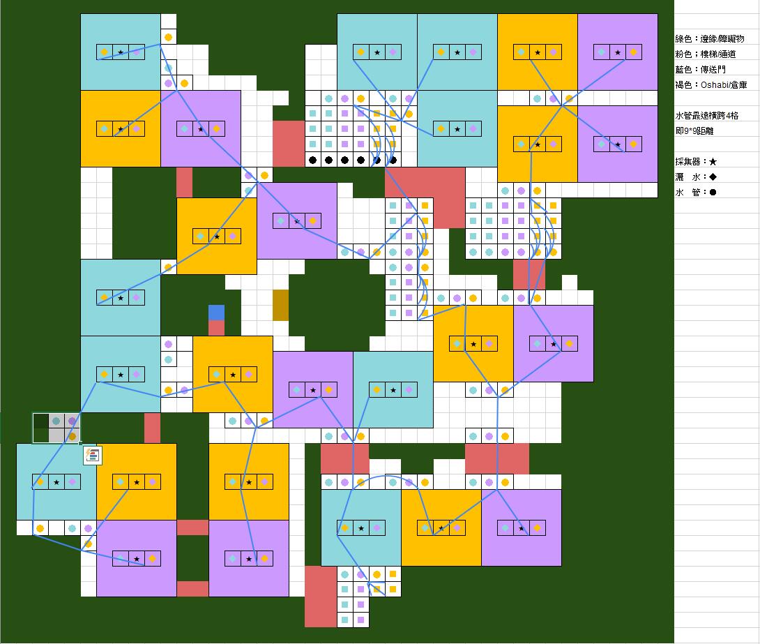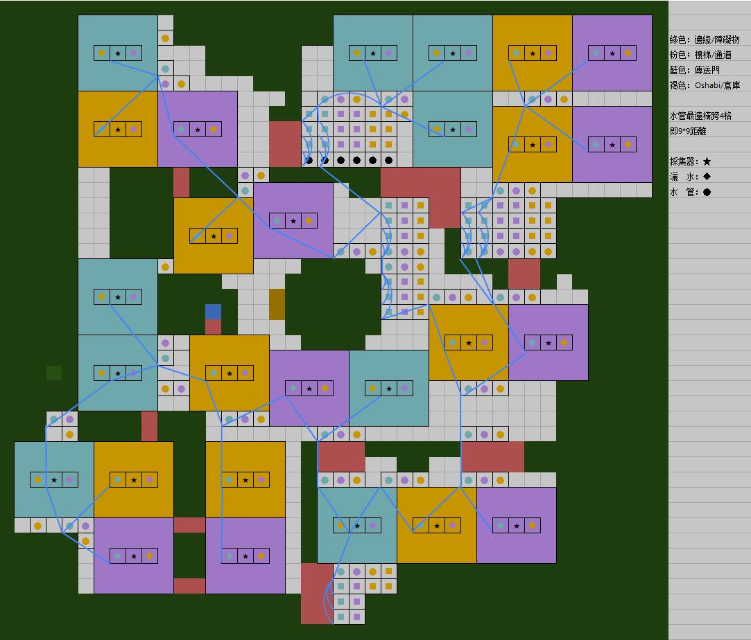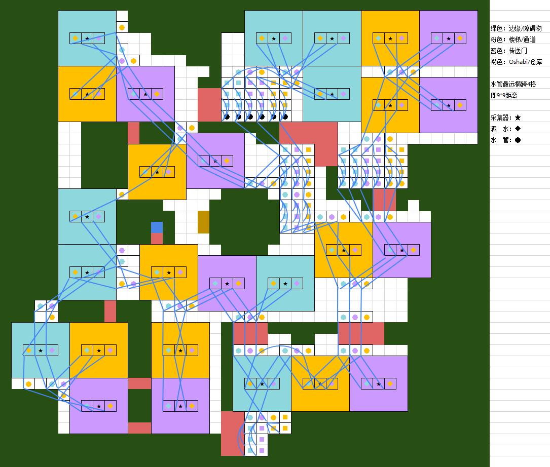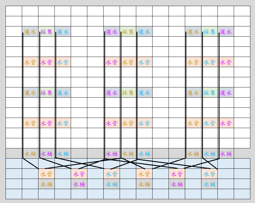 所有工具连接都需要靠水管采集器.水桶.洒水 要相互连接中间都要有 水管 且所以工具都不可以跨颜色