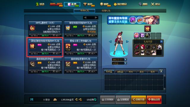 第二个是购买追忆NPC礼包,这一个8888点券的礼包是可以用代币券购买的,加上19块钱就可以购买一套,礼包性价比较高。