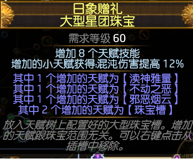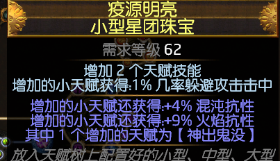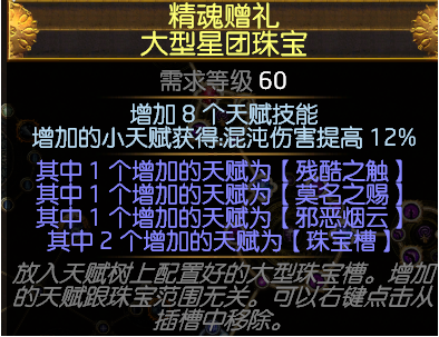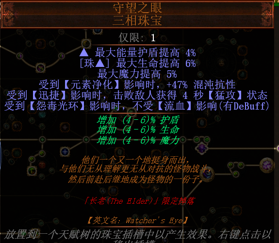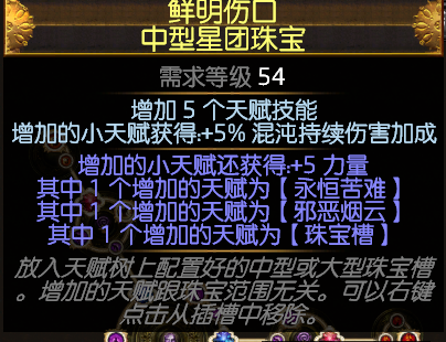 三相珠宝一颗:怨毒伤害持续时间,有钱就持续伤害加混沌抗加成飞起。