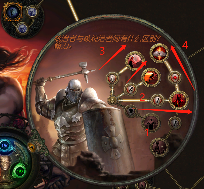 先点出耐力球,再点出免晕。近战免晕很重要。或者戒指带裂界,用暗金合金戒指的免晕代替升华,点出秒回。