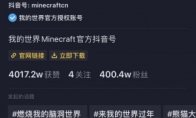 感恩有你,《我的世界》官方抖音号粉丝量突破400万