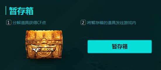 6、获得的道具存放在【暂存箱】中,可选择分解成CF点或发往游戏仓库;