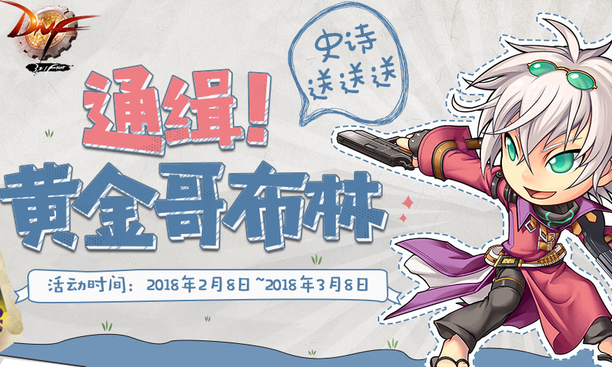 马上就是新春了,大家都在欢乐度过节日的时候一定会有一些心怀鬼意的坏人想在这个时候趁虚而入,比如臭名昭著的黄金哥布林!但是,地下城的勇士可都不是马虎的人!这不DNF2018“通缉!黄金哥布林”活动就要上线了!想要知道活动怎么参加,为大家度过一个快乐的节日尽一份力,那就快和小编一起来看看吧!