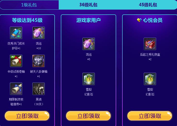 心悦会员可额外领取专属礼包及抽取心悦成长值。各礼包单Q限1次。