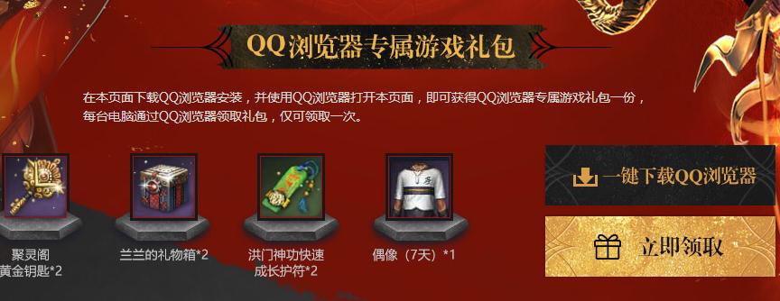 每台电脑通过QQ浏览器领取礼包,仅可领取一次。