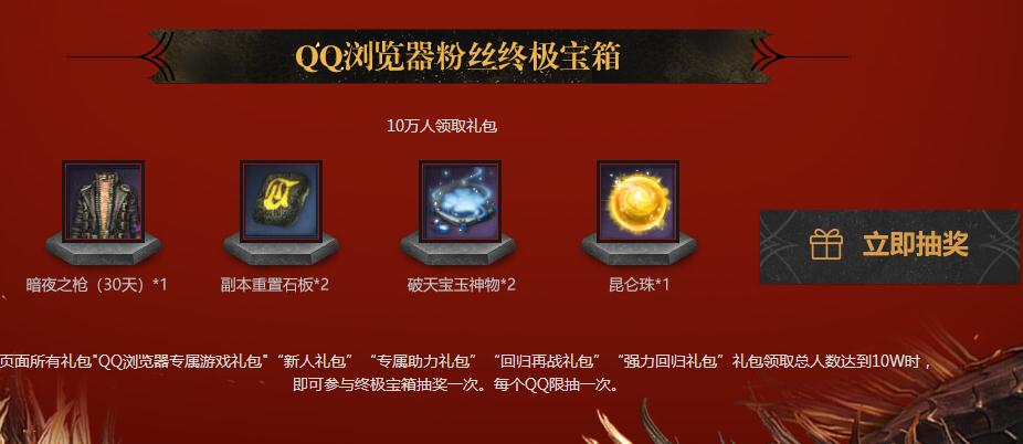 即可参与终极宝箱抽奖一次。每个QQ限抽一次。