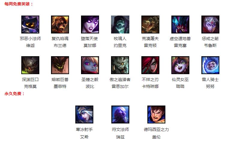 什么是每周免费英雄呢?就算你没有买英雄,在游戏中也有数个免费英雄可以使用。免费英雄会在每周五轮换,这样大家不用花钱也能体验到不同英雄带来的乐趣。为了提升游戏体验,并让玩家体验到更多的游戏内容,每周轮换的周免英雄数量调整为游戏整 体英雄数量的10%(四舍五入),因此周免英雄数量增加到了14个,当推出第145个英雄时,周免英雄数量将会增加至15个。