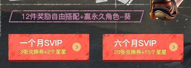 1个月SVIP获得3张兑换券+2个星星,6个月SVIP获得20张兑换券+15个星星