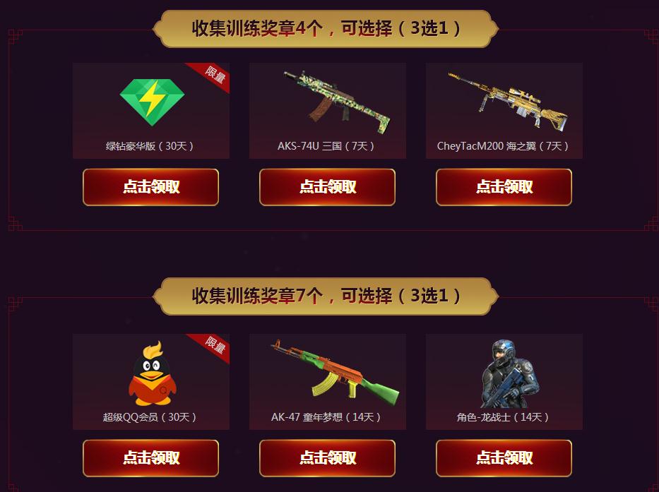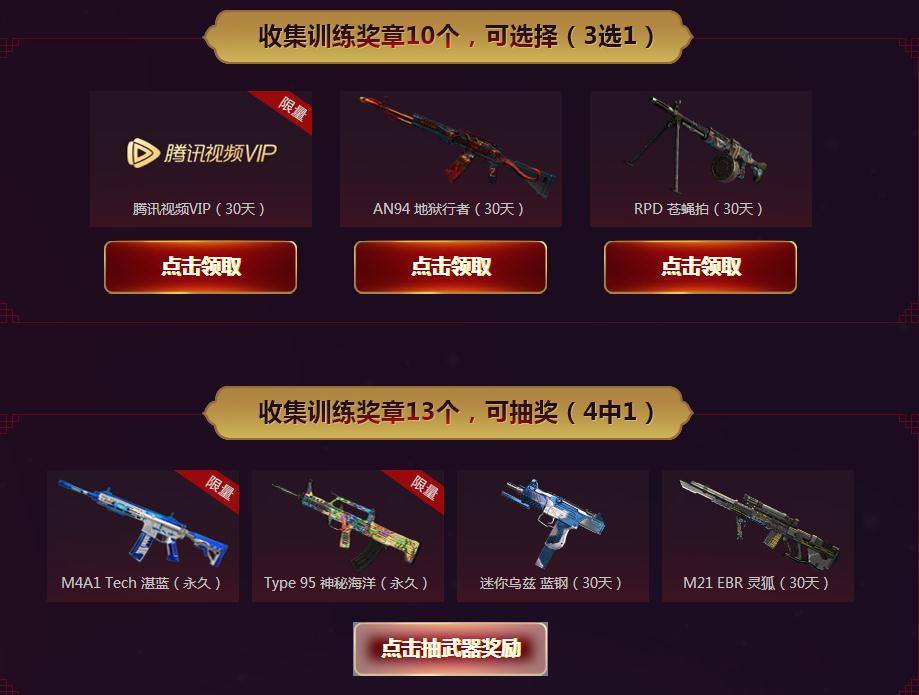 领取了新兵礼包的玩家,可通过完成任务获得训练奖章。累计训练奖章数量达到要求即可参加抢好礼活动。限量奖励每天20:00刷新。