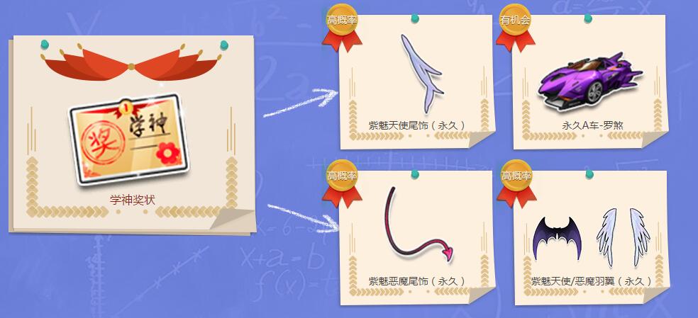 3月12日-3月18日,与好友完成任意一局比赛即有机会获得【学神奖状】,打开可获得以下奖励。