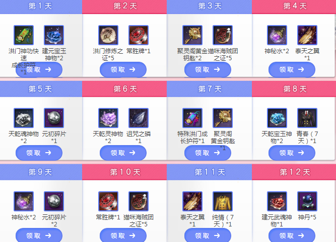 在登录游戏之后即可一次性领取全部奖励,神物、时装、泰天材料等这次全都有哦~