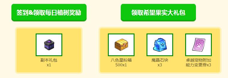 活动期间,累积成功签到满10天,还可领取希望果实大礼包。