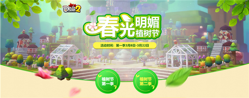 《冒险岛2》春季总动员第一季于3月8日正式上线,“春光明媚植树节”第一季同步启动。活动期间,凡完成主线任务“特莱雅真正的盾牌”任务的玩家,均可在活动专属页面领取礼包并栽种专属自己的小树苗。