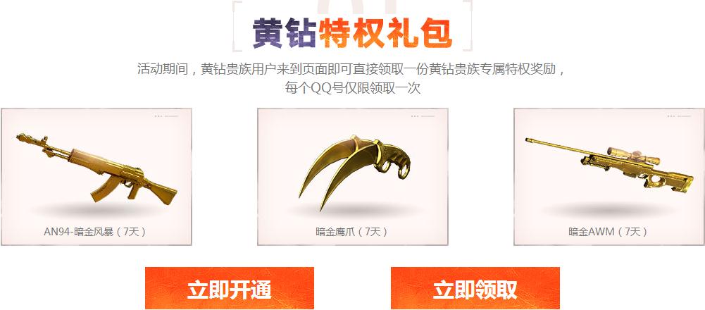 活动期间,黄钻贵族用户来到页面即可直接领取一份黄钻贵族专属特权奖励,每个QQ号仅限领取一次。