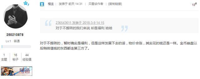 策划这个金币限额出发点是好的,但感觉真打击不了商人,哪个黑商手里没有几十个号?最后受苦的感觉还是普通玩家,如果没了普通玩家,神豪玩着又有什么意思,装B给谁看呢?