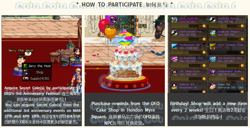 DFO's 3rd Anniversary Festival DFO 3周年庆:收集秘密硬币