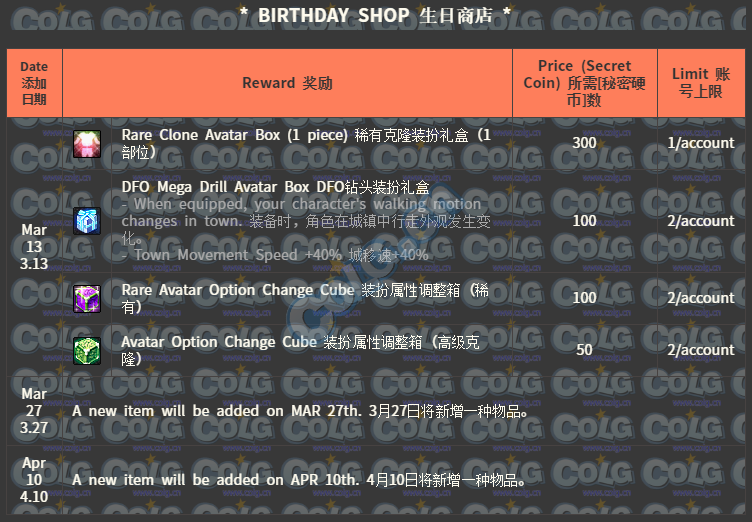 1. 在三周年庆的各种活动中获得[秘密硬币]!可以在3月27日和4月10日的额外3周年庆活动中获得更多的秘密硬币。
