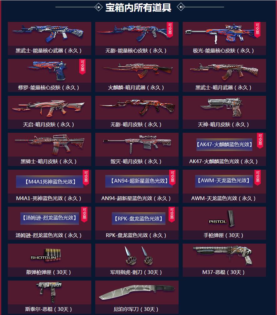 4、宝箱中的部分道具可以直接在交易所中进行交易;