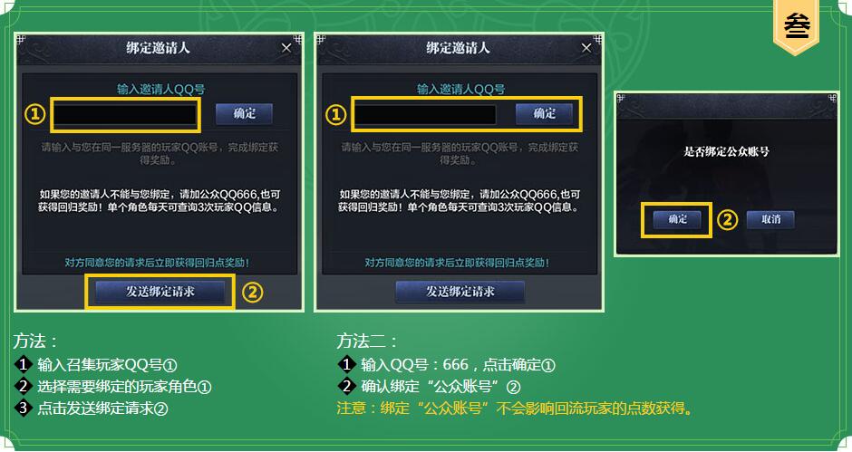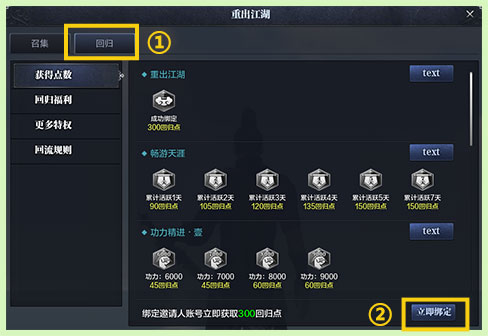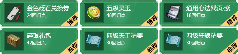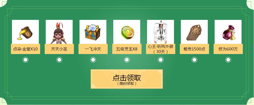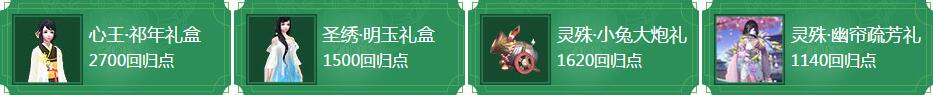 2018年3月1日之前在游戏内建立过角色,且2018年3月1日起未登录过游戏,角色功力4000以上的玩家,可以在以下7个道具中选择3样,单角色限领一次。