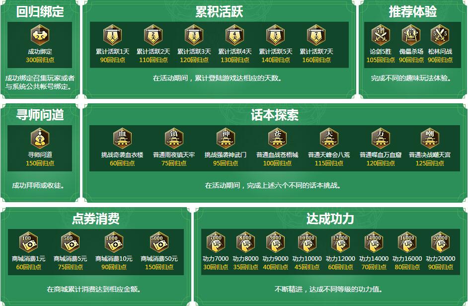 回归玩家:2018年3月1日-3月20日未登录游戏,且功力值4000以上