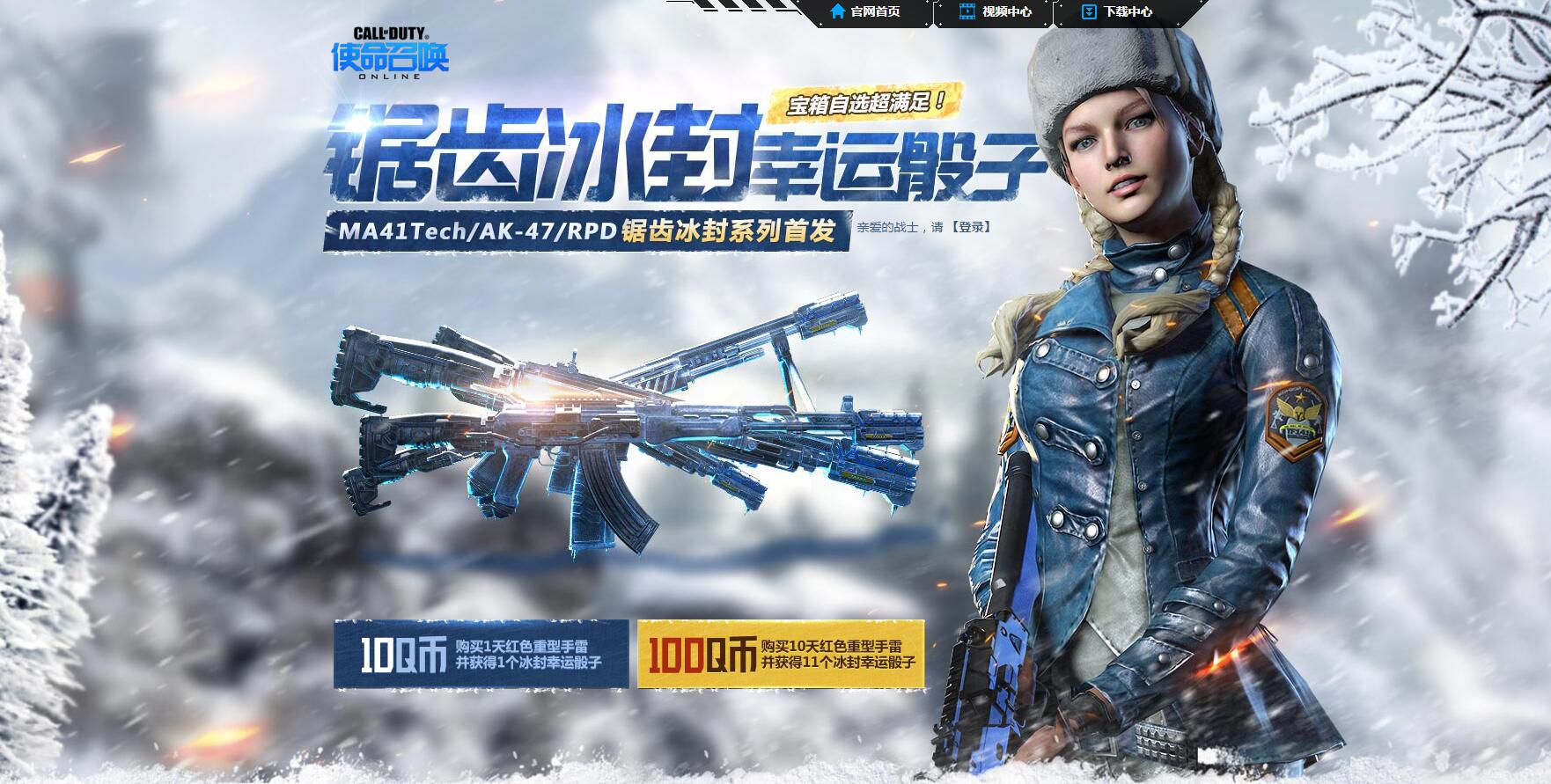 《使命召唤OL》MA41Tech/AK-47/PRD锯齿冰封系列首发,现参与锯齿冰封幸运骰子即可有机会获得。幸运骰子除了参与抽奖,还可自选兑换稀女角色赠永久配装。
