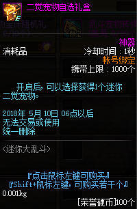 开启后,可以随机获得5个宝珠,获得的宝珠只能对【迷你大乱斗】活动中获得的迷你二觉宠物使用