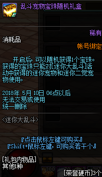 开启后,可以随机获得1个宝珠获得的宝珠只能对【迷你大乱斗】活动中获得的迷你宠物和迷你二觉宠物使用