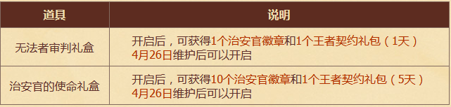 累计参与5次活动可以获得1个【治安官的使命礼盒】