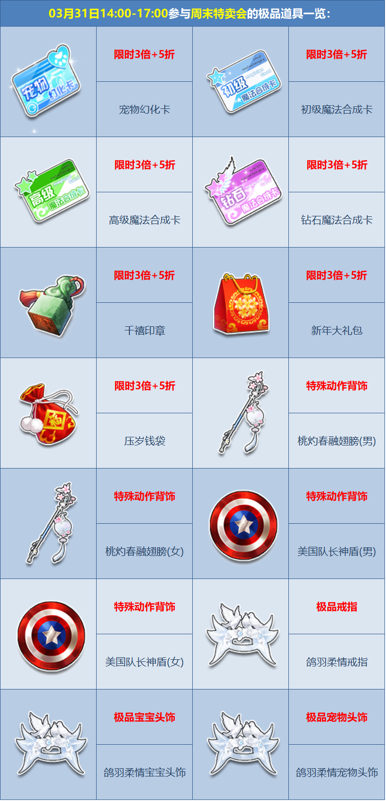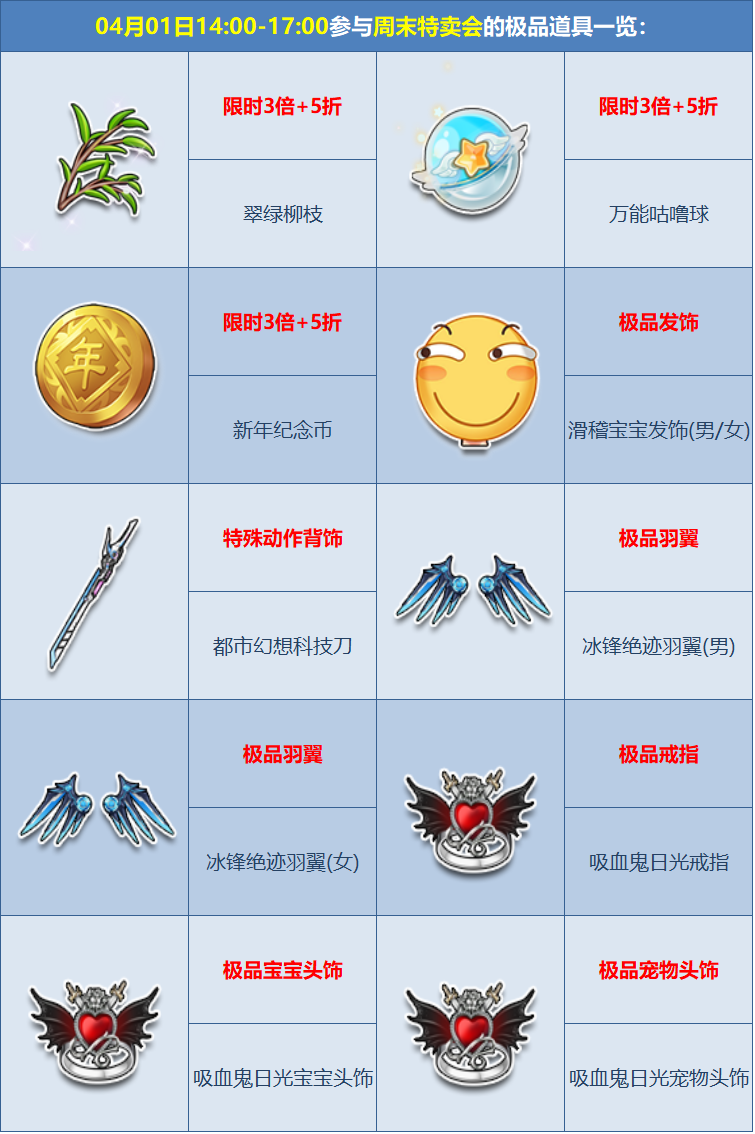 参与活动道具一览: