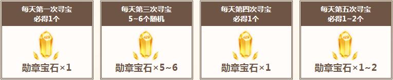 每天完成任务,可获得寻宝券,每消耗寻宝券×2,即可参与一次寻宝,概率获得以下奖励!