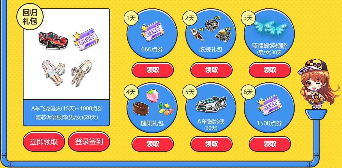 同时回归后每日登录签到还可以额外兑换礼包