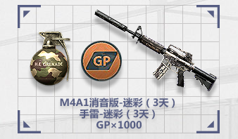 M4A1消音版-迷彩(3天)、手雷-迷彩(3天)、GPX1000