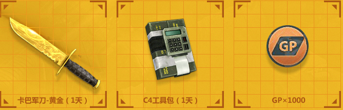 奖励:AK47-黄金(1天)、防弹衣(7天)、防弹头盔(7天)