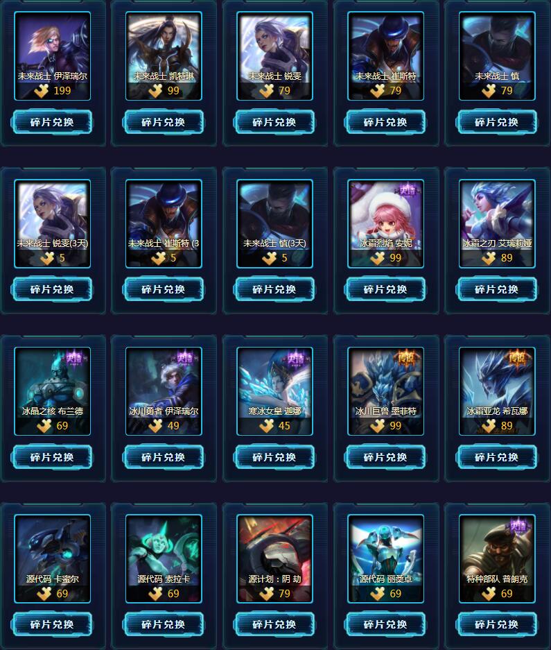 1、集齐指定数量的珍宝皮肤碎片可兑换下列皮肤。(每个QQ同种皮肤仅限兑换1次)
