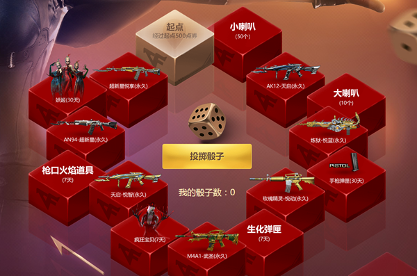 3.投掷筛子所到达的区域即为本次可以领取奖励的区域,获得的物品会在24小时内发往您的游戏仓库;