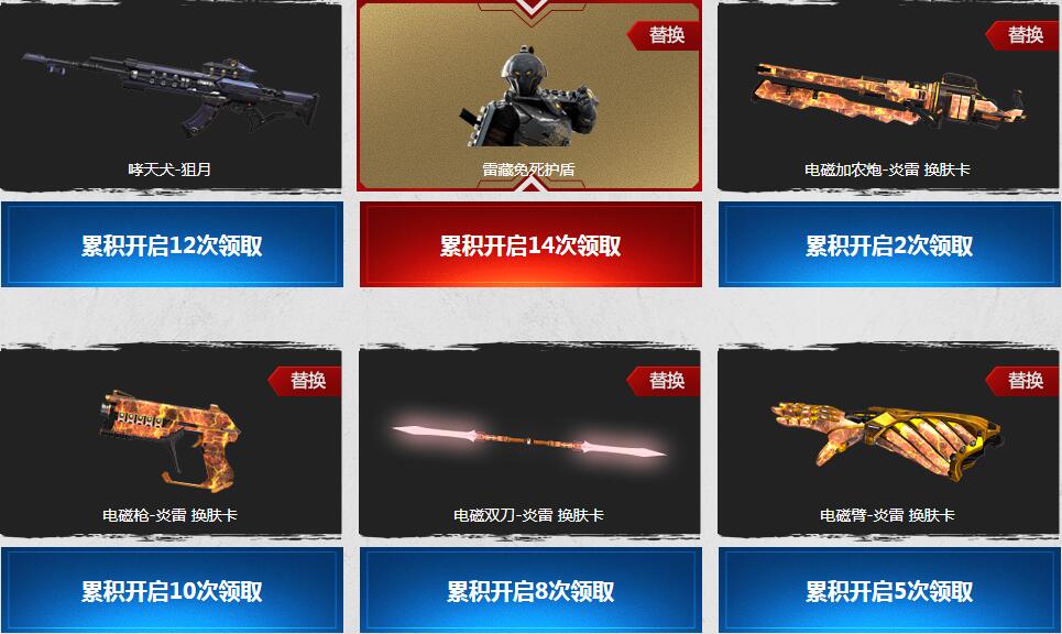 7、累积开启道具箱成功获得珍稀非卖品后,所有获得的角色/换肤卡/武器挂饰/购物券/加成卡将于活动结束后5个工作日内发放;