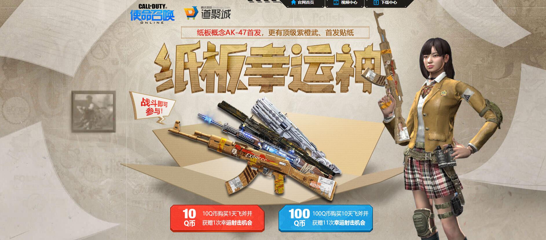 《使命召唤OL》纸板幸运神活动现已开启,活动期间内,前往活动页面购买指定道具即可获得幸运射击机会,并又机会获得永久AK-47 纸板、永久天命、永久MR23 电磁风暴等丰厚奖励,下面一起来看看吧。