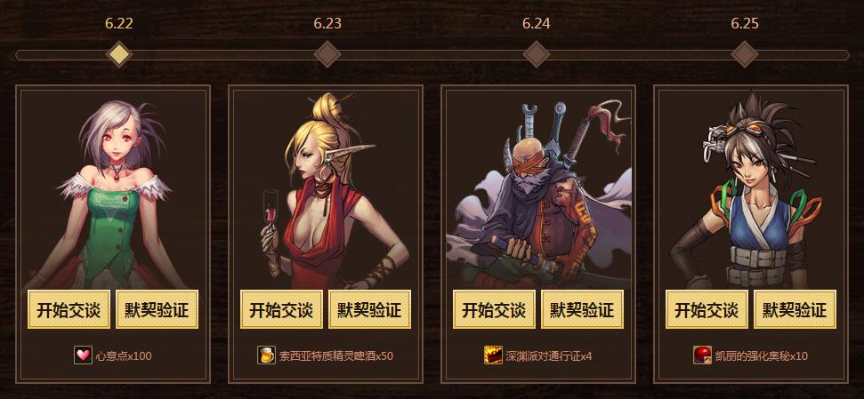 1、6月22日-7月2日,玩家参与答题,不论是否通过默契验证均可获得对应NPC送出的奖励;