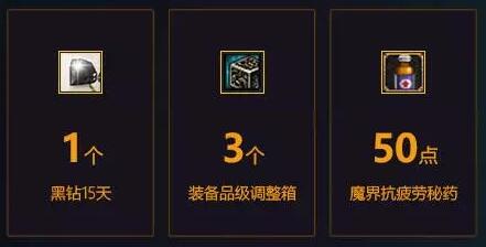 2、开通一个月豪华绿钻即可领取专属礼包:黑钻15天+装备品级调整箱*3+魔界抗疲劳秘药50点