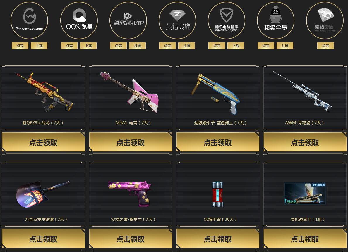 活动期间,用户每点亮一个特权图标,即可领取1件装备,每件装备最多领取1次。