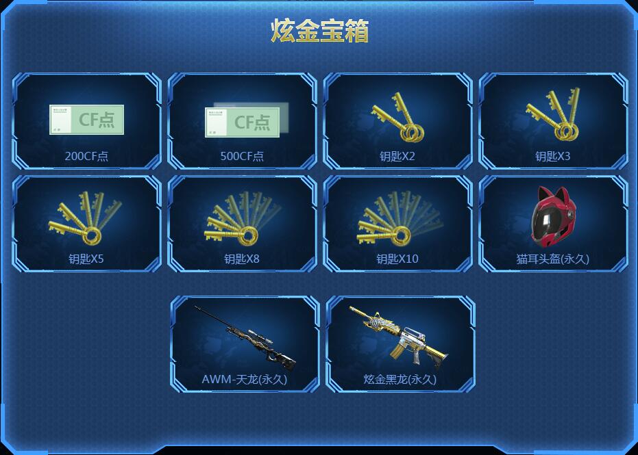 3、寻宝获得的道具将会从奖池中去除,不会重复获得;炫金宝箱内获得的道具部分可以重复获得(猫耳头盔不可重复到账);