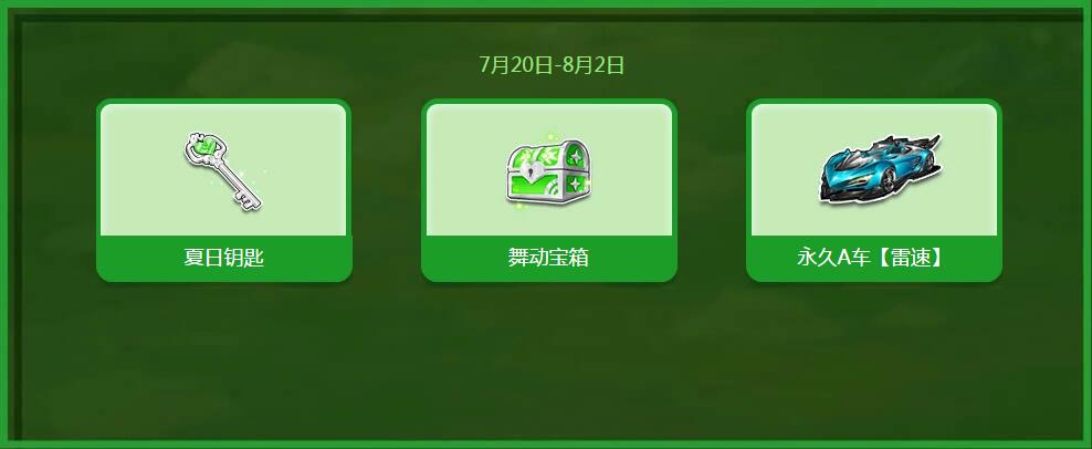 注:只要使用1个【夏日钥匙】打开1个【舞动宝箱】,就有机会获得永久A车【雷速】。