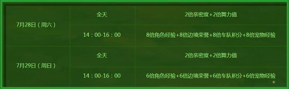 7月29日(周日)14:00-16:00累计在线2小时,可获得:3000点券+1000消费券