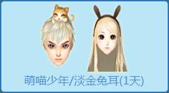 1元购买“萌喵少年/淡金兔耳”1天 获赠1架“纸飞机”