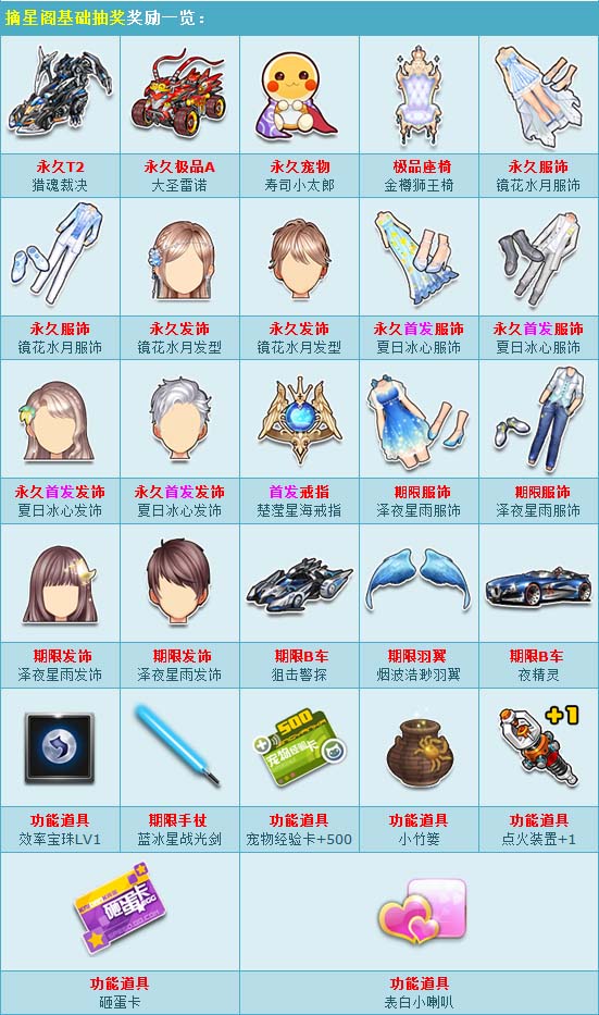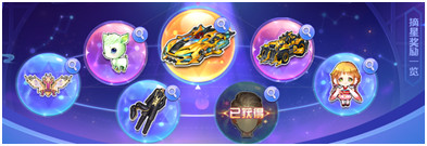 每当进度条积累满之后,玩家均可获得一次免费摘星的机会,可以从上方的摘星奖池中随机获得一个摘星奖励。
