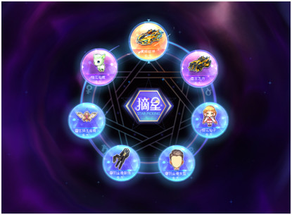 每当进度条积累满之后,系统会自动触发摘星事件,并打开摘星界面。这个时候,玩家点击“摘星”按钮,即可从以下几个摘星奖励中随机获得一个,已经获得过的摘星奖励不会重复获得。